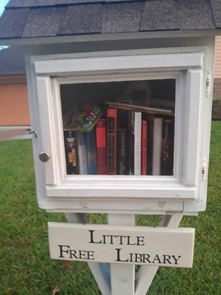 Howdy from Alvin, Texas, located halfway between Houston, aka H Town, and Galveston (yes. like the song!). My Little Free Library, located in my side yard (LOL)…