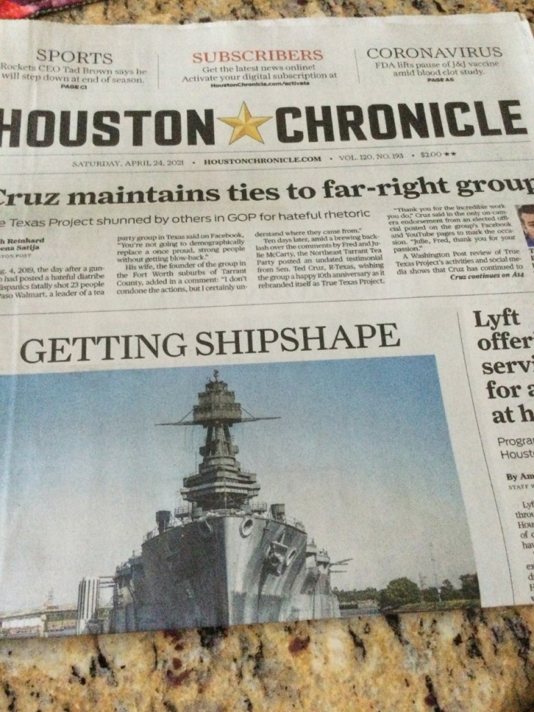 The morning paper was next, something I usually don’t get to before afternoon. Yes, we are dinosaurs that still get a paper paper daily.