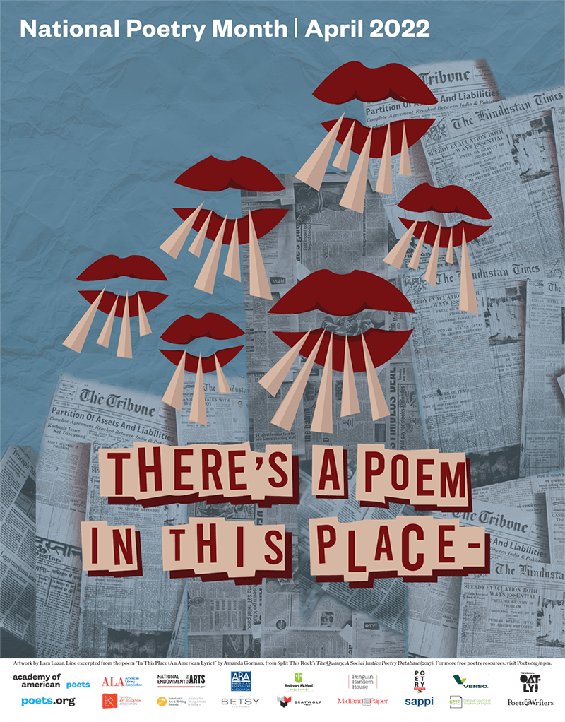 Tomorrow begins the celebration of poetry for 2022, National Poetry Month. This blog and also my Advanced Writing class will be joining in on the celebration, as I do something each day of April to celebrate poets and poetry. Here is the official poster for 2022 I posted in my classroom yesterday: